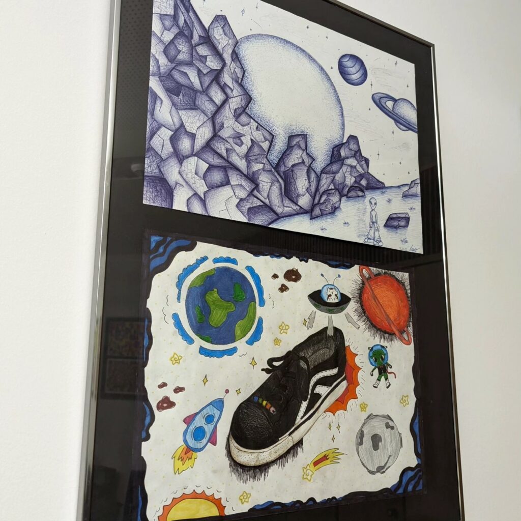 Die Schülerinnen und Schüler des Rhein-Sieg-Akademie-Kunstkollegs und Studierende der Rhein-Sieg-Akademie für Kunst und Design sorgen im Siegburger Kreishaus für Farbe. “BUNT GEMISCHT” heißt die Ausstellung, die in den Räumen der FDP-Fraktion für einige Monate zu sehen ist, und zeigt einen beeindruckenden Querschnitt, ob illustrativ, grafisch oder kalligrafisch. Heute wurde die Ausstellung von Sebastian Schuster, Landrat des Rhein-Sieg-Kreises in Anwesenheit einiger junger Künstlerinnen und Künstler, Ulrike M. Schlie und Ron Meier von der Rhein-Sieg-Akademie, Gabriele Paar vom Amt für Schule und Fraktionsmitgliedern eröffnet: “Wie der Name schon verrät, finde ich die Ausstellung sehr abwechslungsreich und ansprechend. Es macht Appetit, sich die Bilder intensiver anzuschauen und es ist toll, wenn sich junge Menschen so für Kunst und Kultur engagieren.” Fabio aus der 7a freut sich über das Kompliment: “Wenn die Leute nach oben gucken und sehen unsere Bilder, das ist ein schönes Gefühl. Das ist für uns eine Gelegenheit, die nicht jeder hat. Mir persönlich macht Kunst sehr viel Spaß und es ist toll, dass unsere Schule hier so viel macht.” Mitschülerin Iria stimmt zu: “Genau das wollen wir mit der Ausstellung erreichen, dass die Menschen unsere Kunst sehen, mögen und sich darüber freuen.”