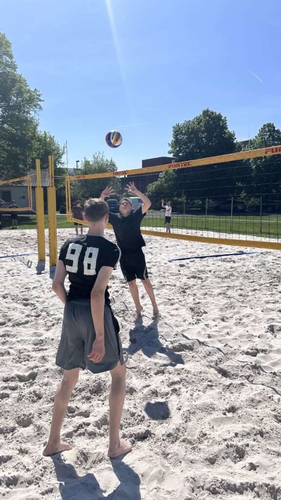 Am 30. April 2025 nahm das Kunstkolleg erstmals an der Kreismeisterschaft im Beachvolleyball in Siegburg teil – mit einem Jungen-, einem Mädchen- und einem Mixed-Team. In spannenden Begegnungen zeigten unsere Schülerinnen und Schüler großen Einsatz und Teamgeist. Besonders dramatisch wurde es im Spiel um Platz 3: Nach einer langen Führung mussten wir uns am Ende leider knapp mit 19:21 geschlagen geben. Dennoch freuten sich alle über unsere sportliche Leistung in der Wettkampfklasse II und eine gelungene sportliche Premiere.