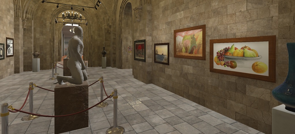 Mit den Tasten W, A, S, D oder den Pfeiltasten können Sie sich durch unsere digitale Kunstausstellung bewegen. Mit der Maus steuert man die Blickrichtung. Sie können auch in den Vollbildmodus wechseln! Mit Escape können Sie diesen dann auch wieder verlassen. (Auf mobilen Geräten ist die Galerie aus technischen Gründen leider nicht zu besuchen.) Viel Spaß in unserer Galerie!